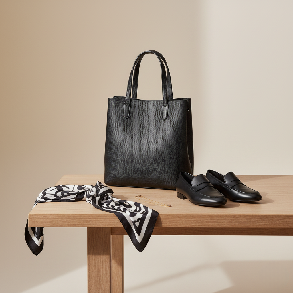 From structured totes to sleek sneakers, simplicity meets sophistication.